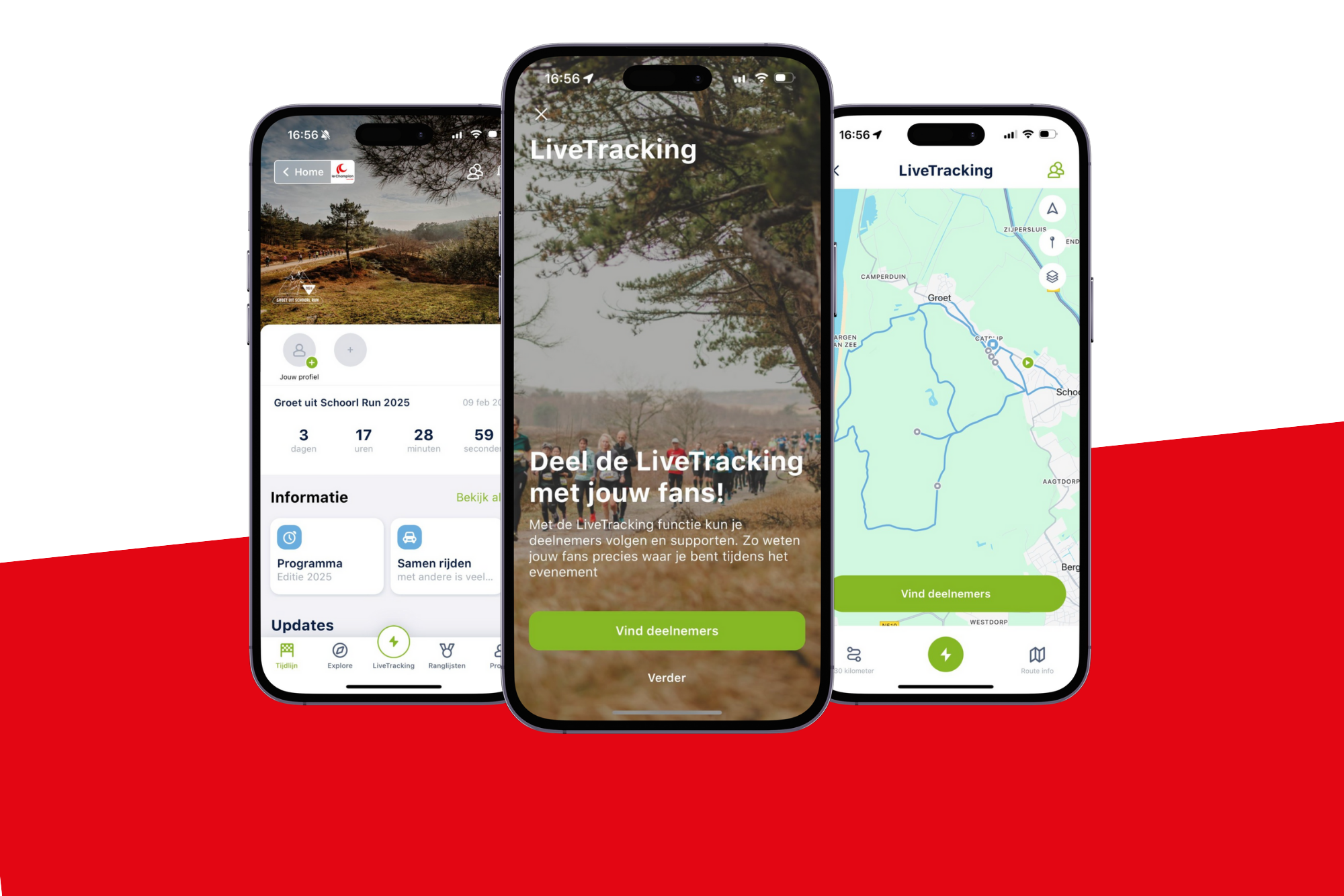 Met de Le Champion app track je deelnemers real-time tijdens de Groet uit Schoorl Run. Juich mee, leef mee en mis geen moment van de race! De app is gratis te downloaden!