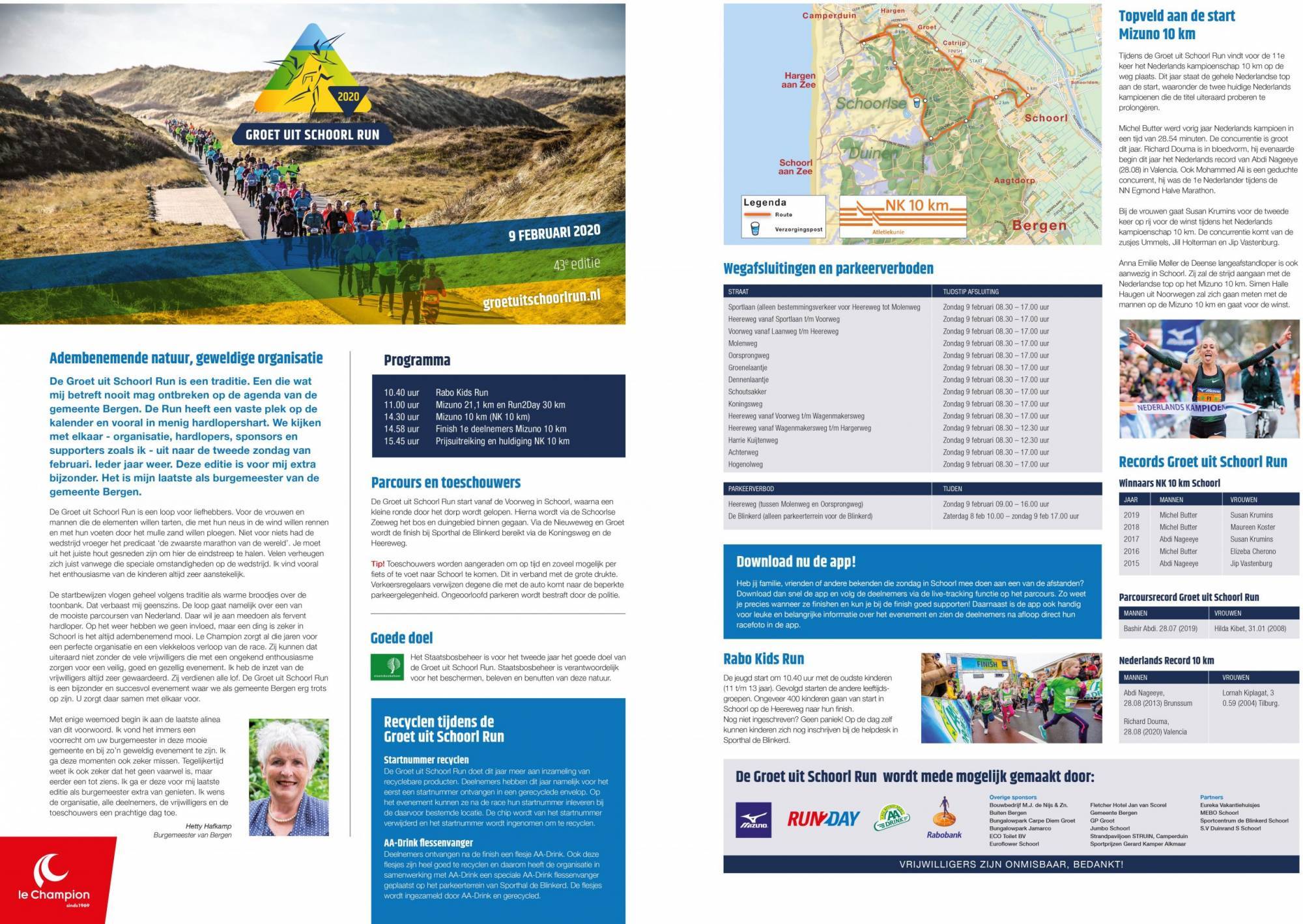 De Groet uit Schoorl Run brengt voor bewoners, naast veel vermaak, ook een aantal beperkingen met zich mee. In overleg met de gemeente en politie is er een verkeersplan opgesteld om het evenement zo soepel, maar ook vooral zo veilig mogelijk te laten verlopen. Op deze pagina lees je binnenkort meer over verkeersmaatregelen, afgesloten straten en parkeerverboden.